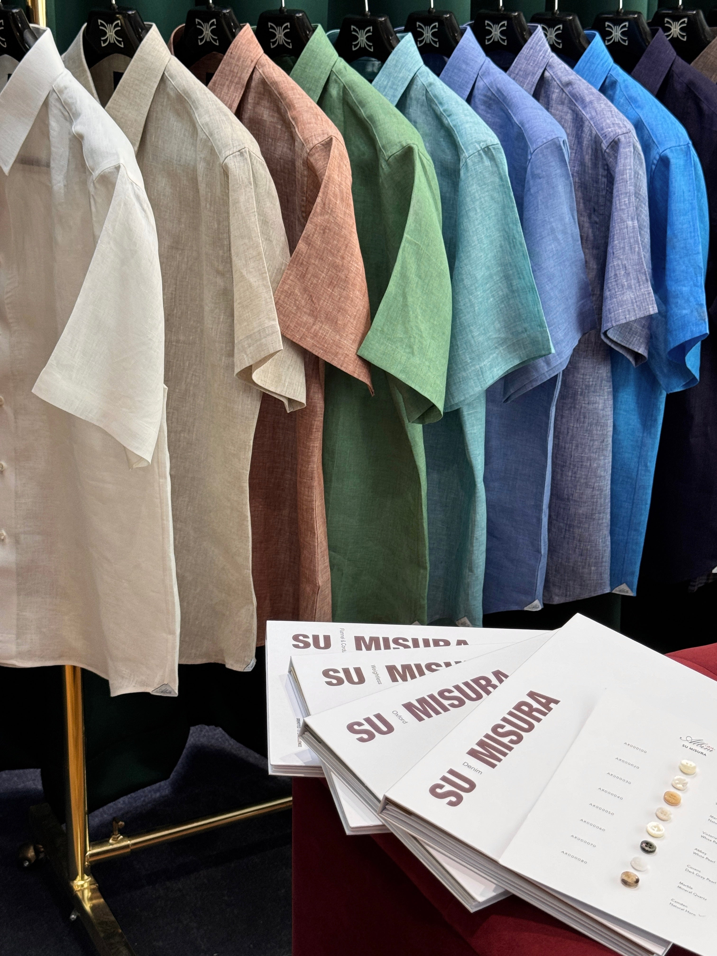 Each shirt is finished with genuine mother-of-pearl button, no two alike, giving each piece its own quiet individuality.